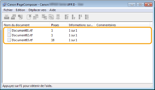 Pour plus d'informations, cliquez sur [Aide] dans l'écran de la fonction Canon PageComposer.