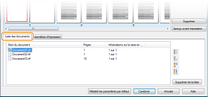 Dans la liste [Nom du document], sélectionnez la tâche d'impression combinant les documents et cliquez sur