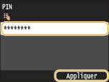 Saisissez le code PIN à l'aide des touches numériques, puis appuyez sur <Appliquer>.
