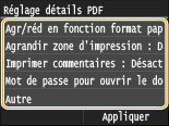 Vous pouvez imprimer des fichiers PDF protégés par mot de passe en saisissant le mot de passe requis pour les ouvrir.