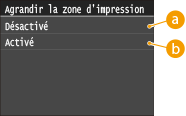 Le réglage spécifie s'il faut agrandir la zone imprimable sur le papier.