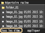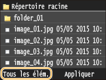 ![]() ![]() Si vous avez sélectionné un fichier avant d'appuyer sur <Tous les élém.>, vous ne pouvez sélectionner que des fichiers du même format.