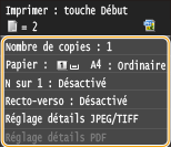 *2 Réglage <Réglages d'impression sécurisée> à <Désactivé> permet à des données allant jusqu'à 50 Mo d'être imprimées (Réglages d'impression sécurisée).
