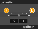 / pour définir la luminosité et appuyez sur <Appliquer>.<Luminosité> n'est pas disponible pour l'impression des fichiers TIFF non compressés en JPEG.