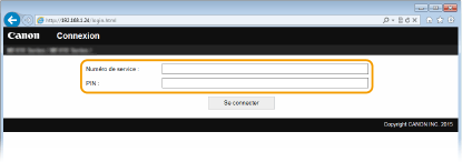 Saisissez l'ID dans [Numéro de service], puis le code PIN dans [PIN]. Configuration du mode de gestion des numéros de service