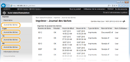 Connectez-vous à l'interface utilisateur distante (Démarrage de l'interface utilisateur distante [Suivi statut/Annulation]  [Journal des tâches].