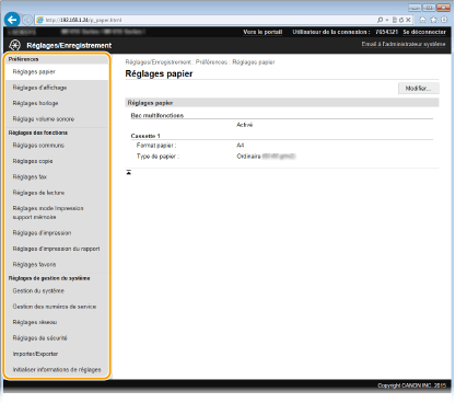 Vous ne pouvez modifier certains réglages que si vous êtes connecté en tant qu'administrateur système.