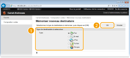 Enregistrement de destinataires dans le carnet d'adresses depuis l'interface utilisateur distante
