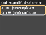 Un maximum de 10 destinataires peut être défini depuis un serveur LDAP.