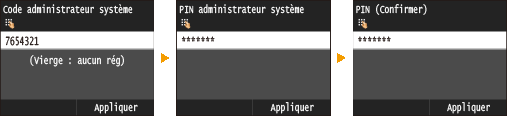Saisissez un nom d'administrateur système de 32 caractères maximum, puis appuyez sur <Appliquer>.