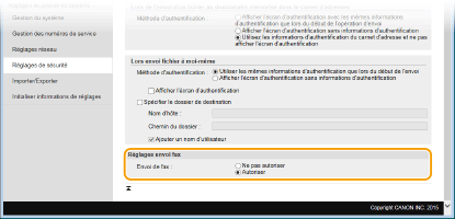 Indiquez si vous souhaitez autoriser l'envoi d'e-mails et d'I-Fax.