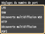 Sélectionnez <Réglages TCP/IP> <Réglages du numéro de port>.