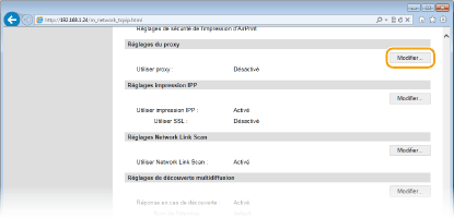 Cliquez sur [Modifier] dans [Réglages du proxy].