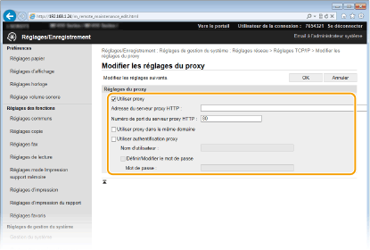 Cochez la case [Utiliser proxy] et définissez les réglages requis.