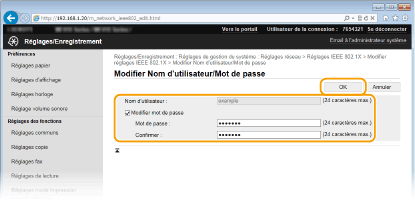 Définissez le nom d'utilisateur et le mot de passe et cliquez sur [OK].