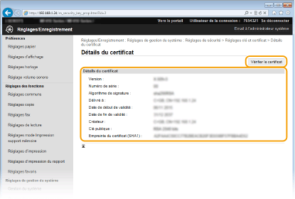 Vérifiez les détails du certificat, puis cliquez sur [Vérifier le certificat].