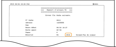Un fax n'a pas pu être envoyé, car l'appareil du destinataire n'a pas répondu en raison de l'occupation de la ligne ou pour toute autre raison.