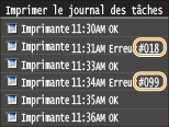 Si une erreur survient, par exemple si l'impression échoue ou si vous ne parvenez pas à envoyer ou à recevoir un fax ou un document numérisé, un code d'erreur à trois chiffres s'affiche dans un rapport ou dans l'écran <Journal des tâches>. Consultez cette section pour connaître les causes et les solutions possibles de chaque code d'erreur. Pour savoir comment imprimer un rapport d'erreur et les informations qui y sont incluses, reportez-vous à la section