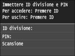Alla visualizzazione della schermata di accesso, attenersi alla procedura seguente per immettere l'ID reparto e il PIN.