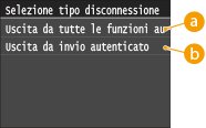 Se si è connessi sia a Invio autorizzato che a Gestione ID reparto, viene visualizzata una finestra di dialogo in cui è possibile selezionare le voci da cui si intende disconnettersi.