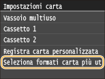 Toccare <Seleziona formati carta più utilizzati>.