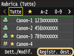 <Impostazioni fax>. Le impostazioni configurate da <Rubrica> sono abilitate per le impostazioni dettagliate delle destinazioni nella Rubrica. |