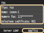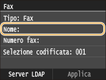 Il nome utente, il numero di fax o l'indirizzo e-mail dell'utente selezionato, registrati nel server LDAP, vengono inseriti nel campo di destinazione.
