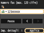 Immettere la stringa di caratteri di destinazione ricerca utilizzando i tasti numerici e toccare <Applica>.