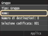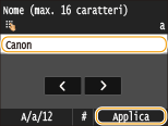 Immettere il nome utilizzando i tasti numerici, quindi toccare <Applica>.