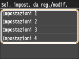 Per modificare le impostazioni registrate, selezionare la combinazione di impostazioni da modificare nel passaggio 3 e quindi procedere con la modifica delle impostazioni.