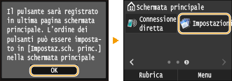 Se si seleziona <Sì>, viene visualizzato un messaggio. Leggere il messaggio e toccare <OK>. La combinazione di impostazioni registrata viene aggiunta alla schermata Schermata principale come pulsante di scelta rapida.