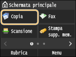 È possibile registrare fino a quattro combinazioni di impostazioni di copia utilizzate frequentemente. Semplicemente selezionando, quando necessaria, un'impostazione registrata, sarà possibile eliminare la necessità di configurare le stesse impostazioni ogni volta che si eseguono copie, ad esempio se si imposta frequentemente il numero di copie a 5 impostare <Cancellazione bordi> a <On> e aumentare la nitidezza quando si copia. È anche possibile visualizzare le impostazioni come pulsanti di scelta rapida nella schermata Schermata principale.