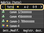 La Rubrica consente di specificare una destinazione selezionandola da un elenco di destinazioni registrate o tramite ricerca per nome delle destinazioni con i nomi dei destinatari.