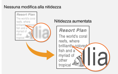 È possibile regolare la nitidezza dell'immagine. Aumentare la nitidezza per ottenere righe e testo sfocati più precisi o diminuire la nitidezza per migliorare l'aspetto delle foto di riviste.