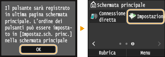 Se si seleziona <Sì>, viene visualizzato un messaggio. Leggere il messaggio e toccare <OK>. La combinazione di impostazioni registrata viene aggiunta alla schermata Schermata principale come pulsante di scelta rapida.