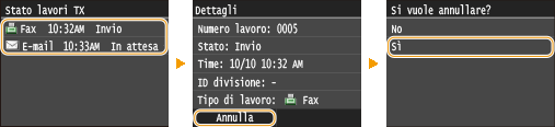 sul pannello operativo. È inoltre possibile annullare l'invio dei fax dopo aver controllato lo stato fax.
