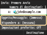 ![]() ![]() L’indirizzo di risposta che può essere specificato è sempre uno degli indirizzi e-mail registrati nella Rubrica.