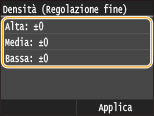 Se <Risparmio toner> è impostato su <On>, non è possibile utilizzare questa funzione di regolazione. Risparmio toner