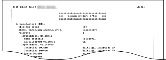 È possibile controllare l'elenco dei nomi dei criteri e le impostazioni IPSec registrate nella macchina stampando un Elenco criteri IPSec.