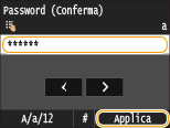 Immettere la password utilizzando i tasti numerici e toccare <Applica>.