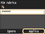 Se per la Rubrica è stato impostato un PIN, durante l'esportazione compare la schermata <PIN rubrica>. Inserire il PIN della Rubrica e toccare <Applica>. Toccare <Ignora> per annullare l'esportazione dei dati della Rubrica.