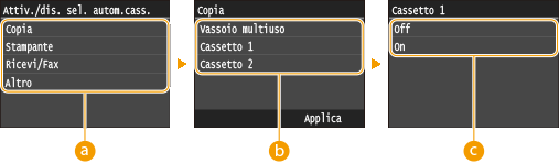Selezionare <On> per abilitare la selezione automatica del cassetto per l'alimentazione carta selezionata nella schermata precedente (