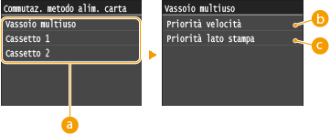 Carta), <Priorità velocità> viene invece applicata all'alimentazione carta. In questo caso, occorre caricare la carta analogamente a quando è selezionato <Priorità velocità> (
