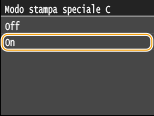 Se il problema non si risolve nonostante l'impostazione di questa opzione, impostare <Modo stampa speciale D> a <On>. Modo stampa speciale D