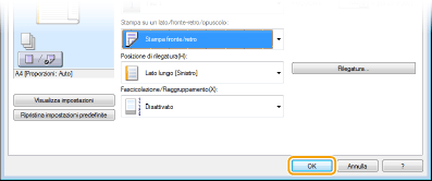 Interfaccia utente cliccabileÈ possibile specificare con semplicità il layout di pagina, la posizione della rilegatura e così via agendo in maniera del tutto intuitiva nell'immagine di anteprima. Per ulteriori informazioni, fare clic su [?] nella schermata del driver stampante.