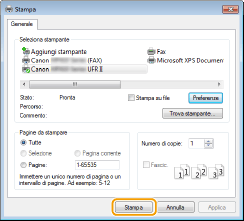 Toccare o fare clic su [Dispositivi] [Stampa] il driver stampante per questa macchina [Stampa].Se si stampa usando questo metodo, è disponibile solo un numero limitato di impostazioni di stampa.