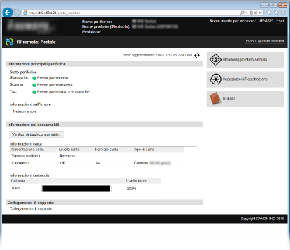 È possibile eseguire tutte le operazioni e impostazioni della IU remota. Se è specificato un ID gestore sistema, immettere l'ID corretto in [ID gestore sistema] e il PIN corretto in [PIN gestore sistema].