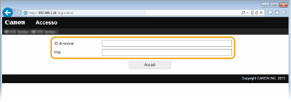 Immettere l'ID corretto in [ID divisione] e il PIN in [PIN].