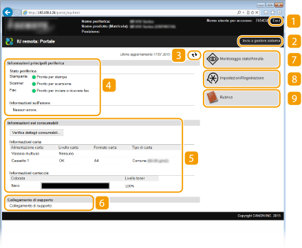 Visualizza il collegamento di supporto specificato in [Informazioni periferica] in [Gestione sistema].