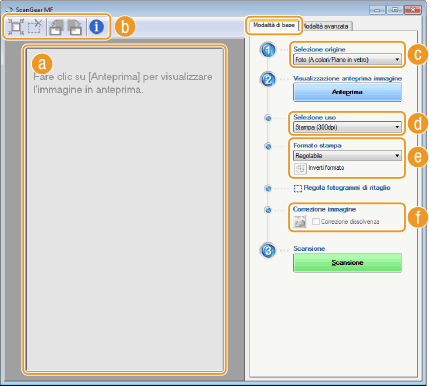 sullo schermo e fare clic su [Scansione]. In questo modo è possibile configurare le impostazioni di base e la scansione.